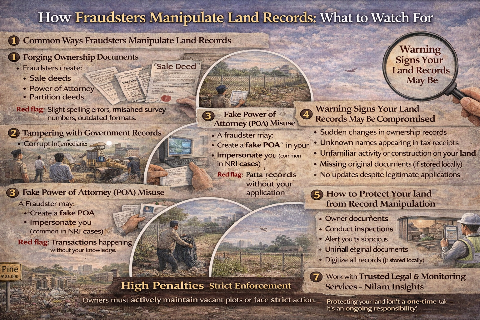 Land fraud is one of the most dangerous risks for property owners in India—especially for NRIs and absentee landholders. With increasing digitization, scams have become more sophisticated, combining document forgery, identity theft, and system loopholes to illegally claim ownership or sell land.